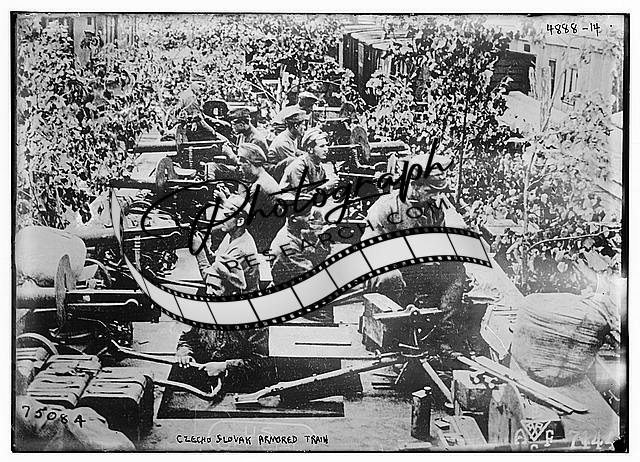 Czechoslovak armored train,heavy artillery,troops,soldiers,Bain News Service
