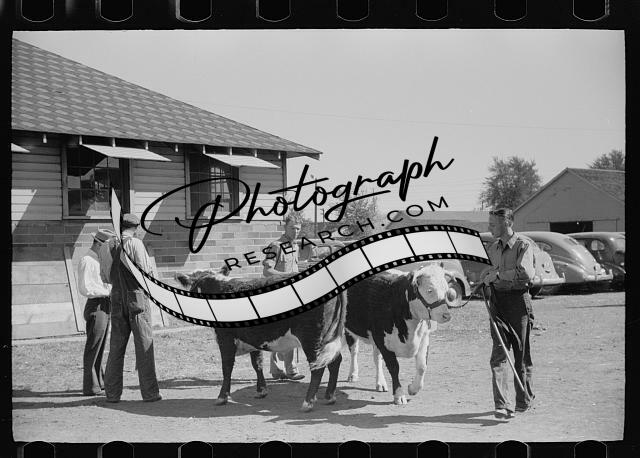 Farm boys,cow,livestock exhibit,Central Iowa 4-H Club fair,Marshalltown,Iowa,1