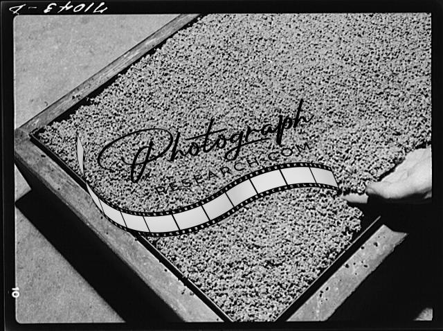 Title: Salinas, California. Guayule seed mixed with sawdust coming from planter in nursery of the Intercontinental Rubber Producers