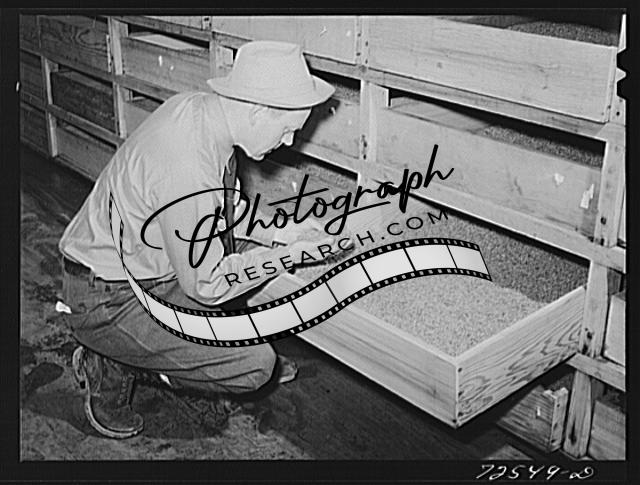 Title: Salinas, California. The treated and centrifuged guayule seed is placed in drawers for drying