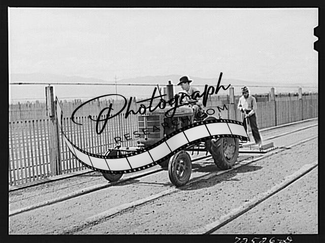 Title: Salinas, California. Newly-planted guayule nursery beds. The fine guayule seed is planted with a mixture of sawdust and sand