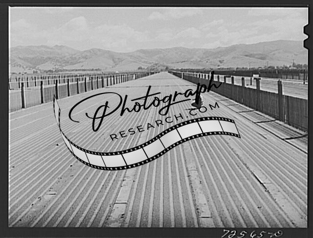 Title: Salinas, California. Guayule nursery. Snow fencing in the foreground will be used for windbreak in the nursery
