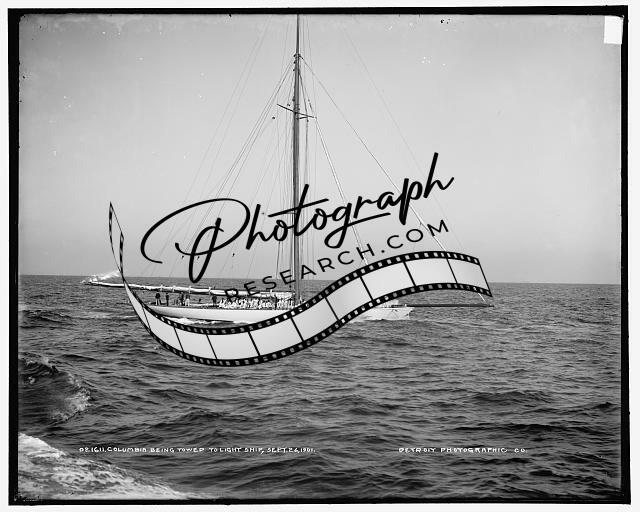 Columbia being towed,light ship,sloop,yachts,America's Cup races,regattas,1901