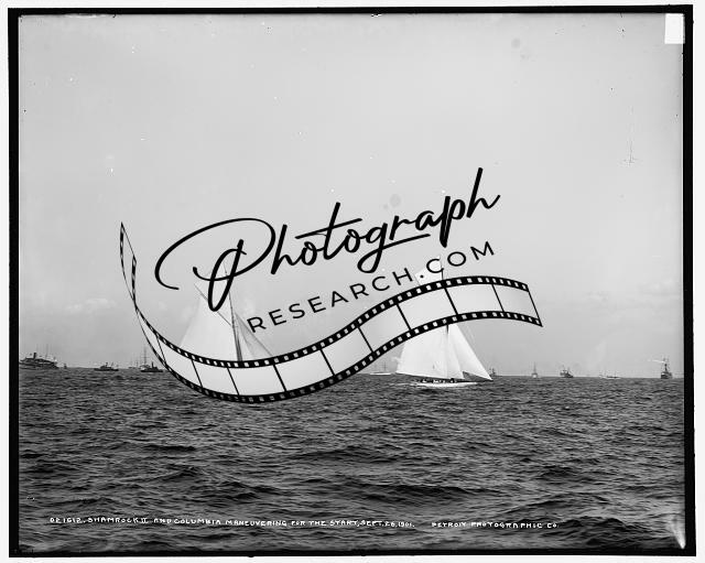 Shamrock II,Columbia maneuvering,start,sloop,yachts,America's Cup Races,1901