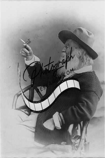 Walt Whitman,wearing hat & sweater,holding butterfly,1873,American Poet,Humanist