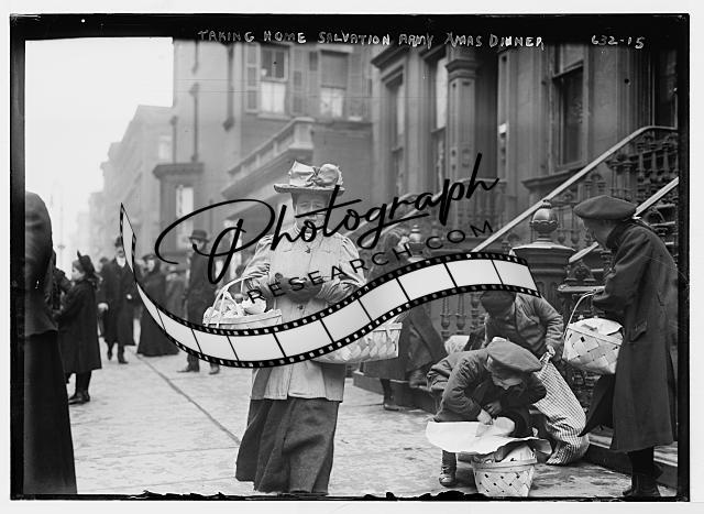 Basket,representing Salvation Army Christmas dinner,New York,NY,1908,Xmas