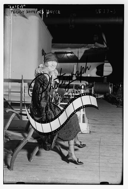 Peggy Hopkins Joyce,actress,celebrity,fur coats,benches,ship passengers,boats