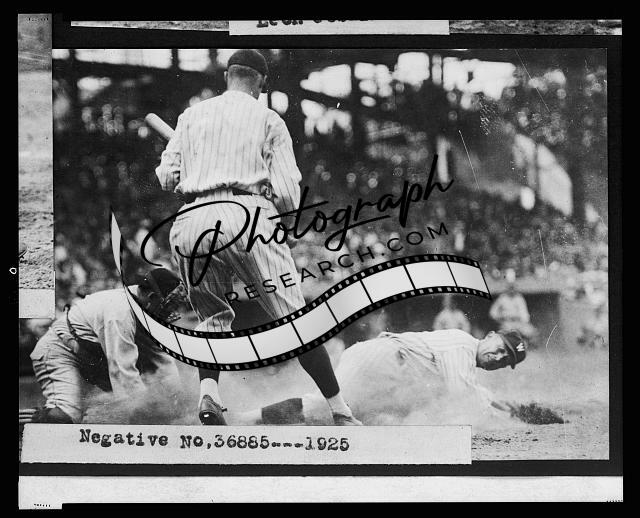 Leon A Goose Goslin,Washington Nationals,sliding,home,baseball game,stands,1925