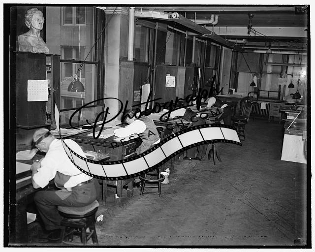 Geological Survey,Lithographic draftsmen correcting printing plate,Interior,1937