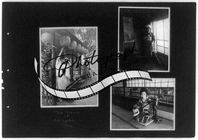 Tea house at Shinjiku,Tokyo,Japan,women,children,broom,Geisha,1915-1925