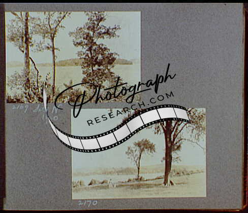 Title: Reference prints, 1919-1920, numbers 2133-2377. River or lake with tree in foreground; Road at side of river or lake with automobile in background