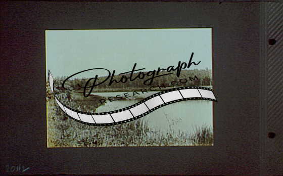 Title: 1917-1918, reference prints from negatives. Stream flowing through trees into field, horizontal