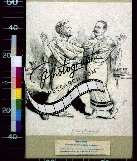 Title: [Randall holding coat tails of Morrison who is trying to cut 'tariff' tree from route of 'Democracy' wagon]
