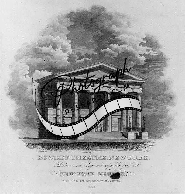 Bowery Theatre,facade,1828,for N.Y. Mirror,New York City,NYC,New York,NY