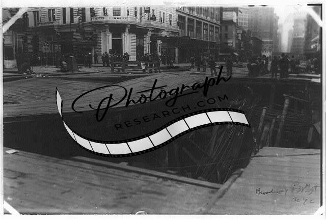 Subway construction,Broadway,38th Street,New York City,NYC,1908-1920,pedestrians