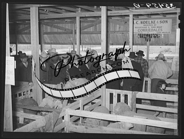 Title: Cattlemen at auction of prize beef steers and breeding stock at San Angelo Fat Stock Show. San Angelo, Texas
