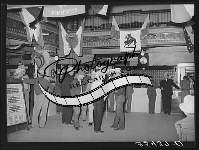 Title: Couple dancing the schottische at a dance during the San Angelo Fat Stock Show. San Angelo, Texas