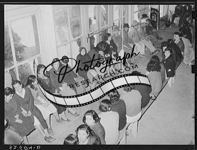 Title: Mexican pecan workers waiting at union hall for assignment to work. San Antonio, Texas