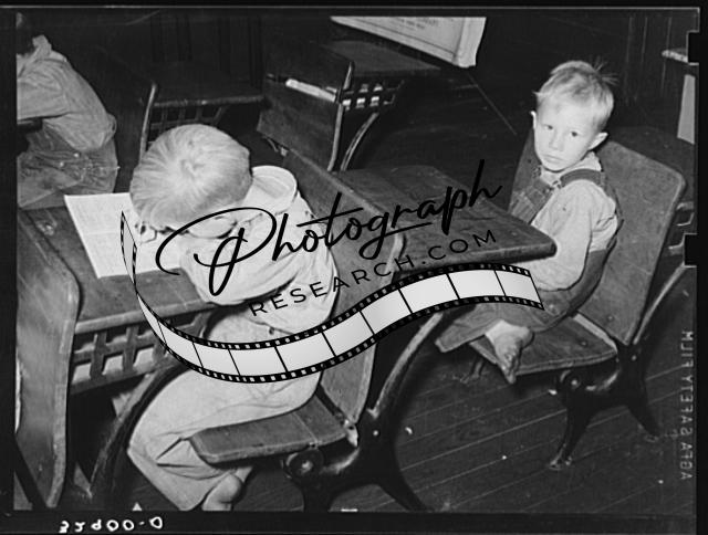 Title: Children in rural school. San Augustine County, Texas. Boy on left has hookworm. The hookworm infestation of rural children is high in this section