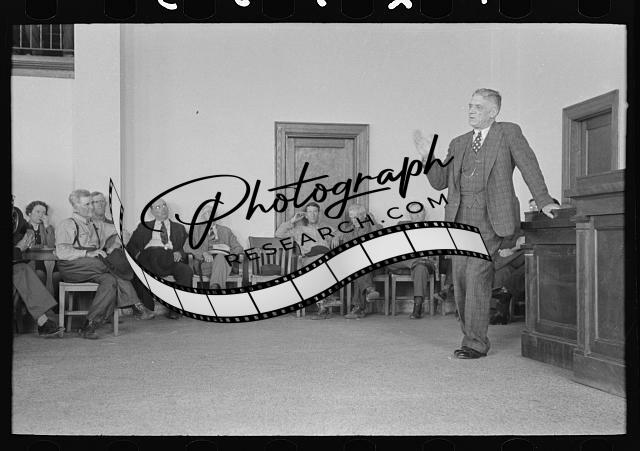 Title: Mass meeting of San Augustine County residents gathered to discuss methods of raising funds to continue WPA (Work Projects Administration) roadwork, San Augustine, Texas