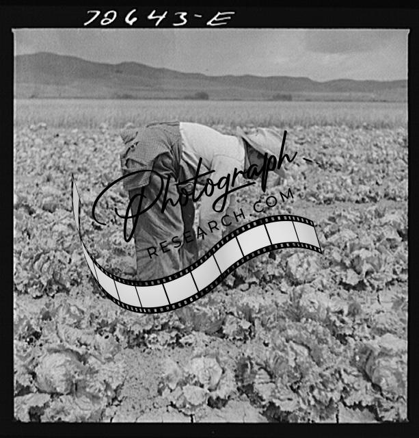 Title: San Benito County, California. Japanese-American who is working in lettuce fields, while he waits for evacuation orders