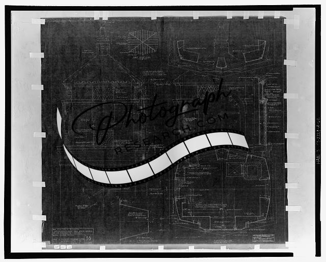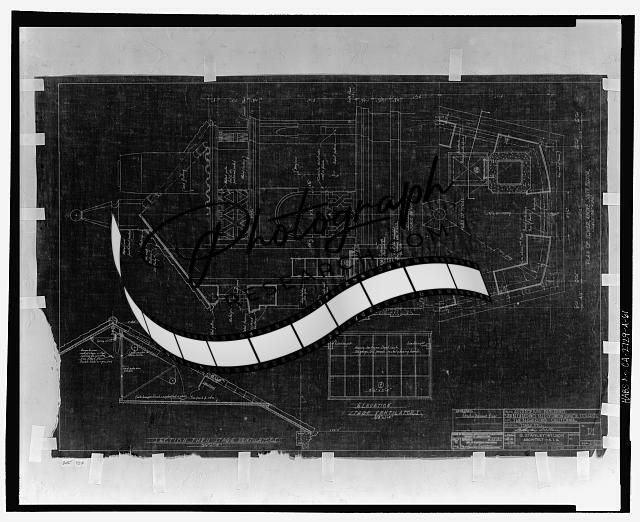 Title: Rose windows and other details. San Bernardino Valley Union Junior College, Auditorium Building. Rose window; front windows; drinking fountain alcove; proscenium arch; stage door. G. Stanley Wilson, Architect, A.I.A., Riverside, California. Sheet 12, job no. 692. Various scales. March 27, 1936. Application no. 1446, approved by the State of California, Department of Public Works, Division of Architecture, April 22, 1936. - San Bernardino Valley College, Auditorium, 701 South Mount Vernon Avenue, San Bernardino, San Bernardino County, CA