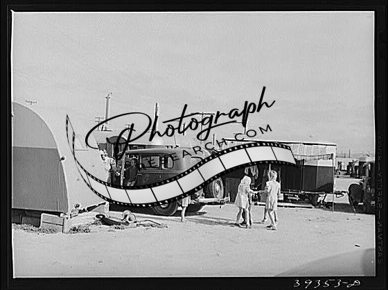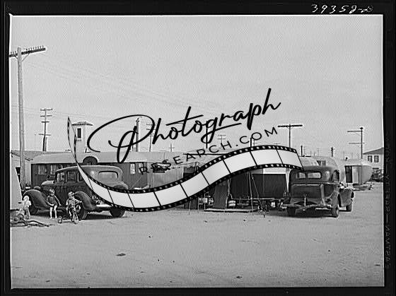 Title: Trailer in trailer court. This trailer is obviously unmovable and because this court is assuming the characteristics of a shack town and because the sanitary facilities are inadequate, it will probably be condemned by board of health. San Diego, California