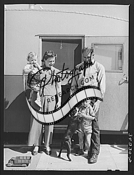 Title: Family of Rohr Aircrafts worker in their trailer home at the FSA (Farm Security Administration) camp for defense workers. San Diego, California