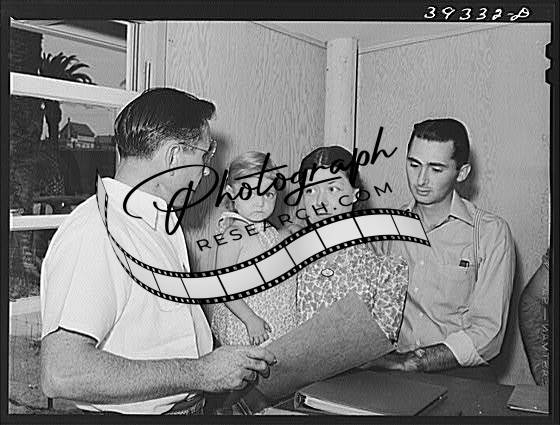 Title: Family group at home at the FSA (Farm Security Administration) camp for defense workers. San Diego, California
