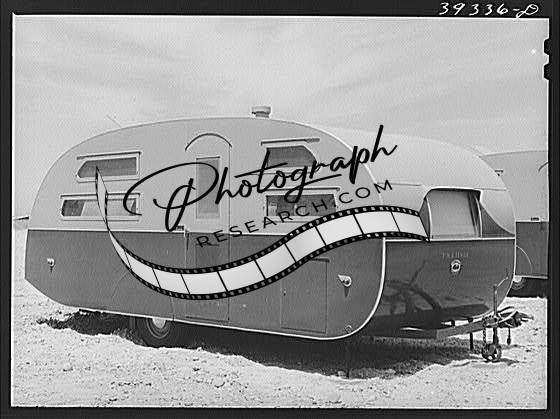 Title: Line-up of trailers at the FSA (Farm Security Administration) camp for defense workers. All trailers rent for seven dollars per week--rental fee includes electricity and water and use of laundry and all sanitary facilities. There is a fee of ten cents for twenty minutes usage of electrical washing machines. San Diego, California