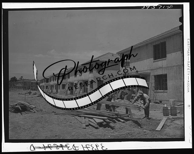 Title: Houses under construction at the Navy defense housing project for enlisted men in the Marines and Navy. San Diego, California