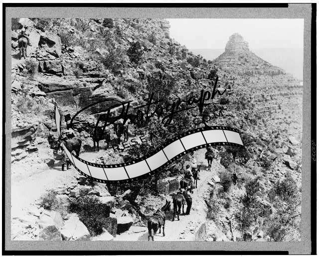Mule train,tourist,horseback,trail,transportation,Arizona's Grand Canyon,AZ,1920