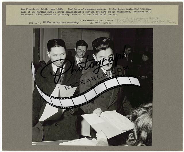 San Francisco, Calif. Apr. 1942. Residents, of Japanese descent, registering for