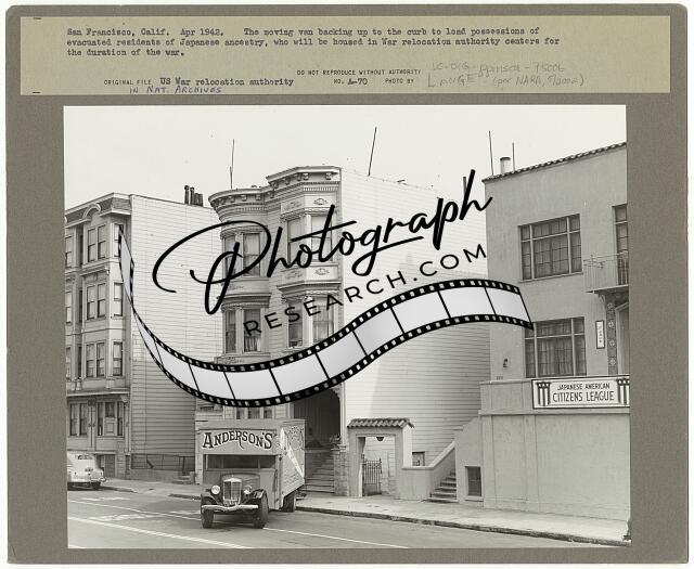 San Francisco, Calif. Apr. 1942. The moving van backing up to the curb to load p