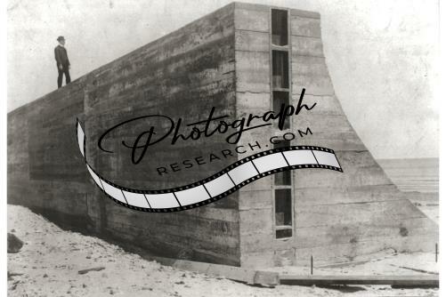Man on portion of seawall built after the hurricane,flood,1900,Galveston,Texas