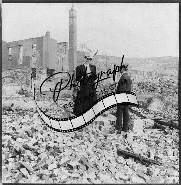 San Francisco Disaster,Earthquake & Fire,Man,Woman,Rubble,May c1906,Destruction