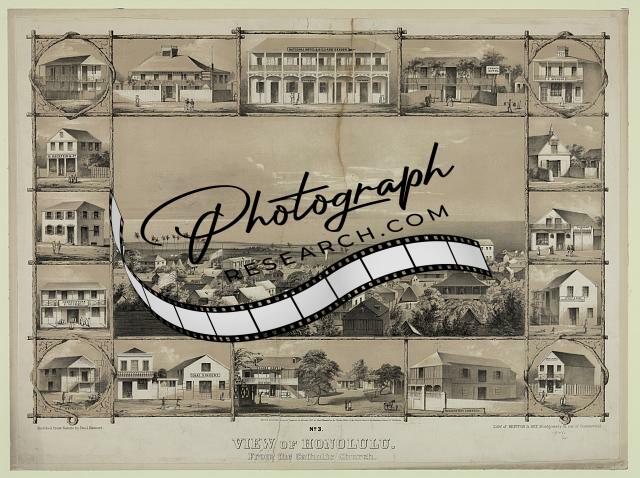 View of Honolulu,Hawaii,HI,Catholic Church,c1854,H. Hackfield,Stuart & Rahe