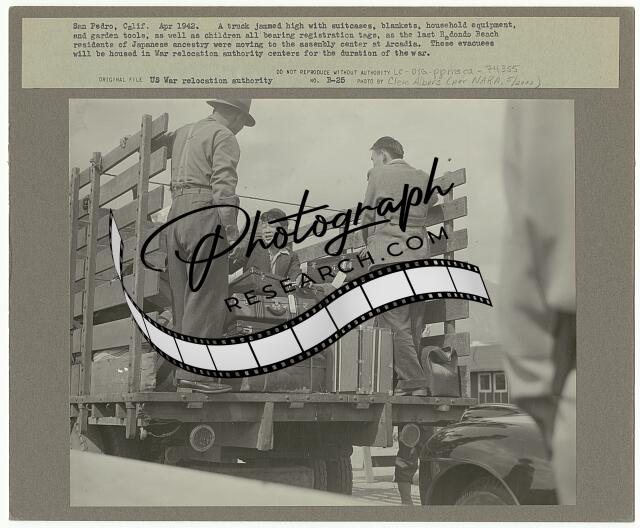 San Pedro, Calif. Apr. 1942. A truck jammed high with suitcases, blankets, house