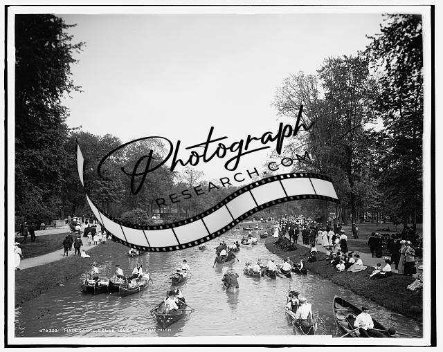 Main Canal,Belle Isle,parks,boats,canoes,water travel,Detroit,Michigan,MI,1900