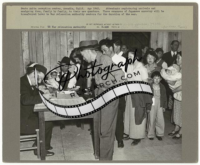 Santa Anita reception center, Arcadia, Calif. Apr. 1942. Attendants registering