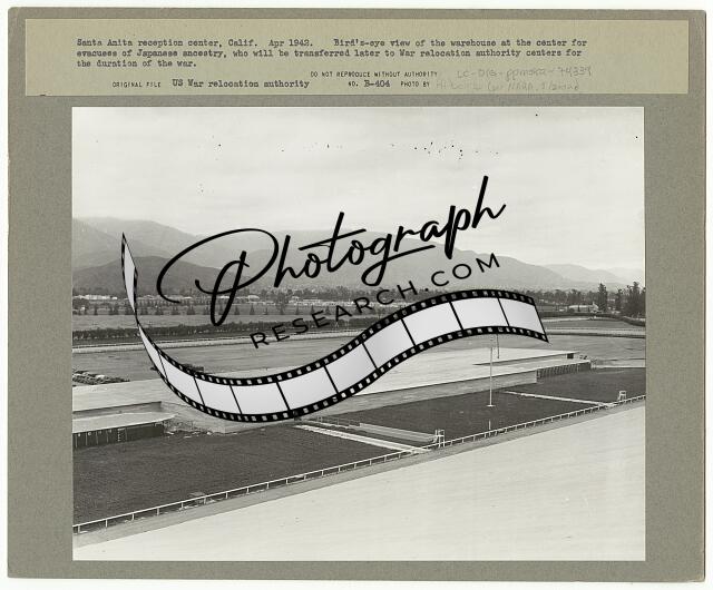 Santa Anita reception center, Arcadia, Calif. Apr. 1942. Bird's-eye view of the