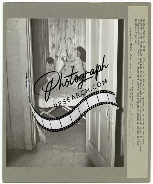 Santa Anita reception center, Arcadia, Calif. Apr. 1942. A brother and sister in