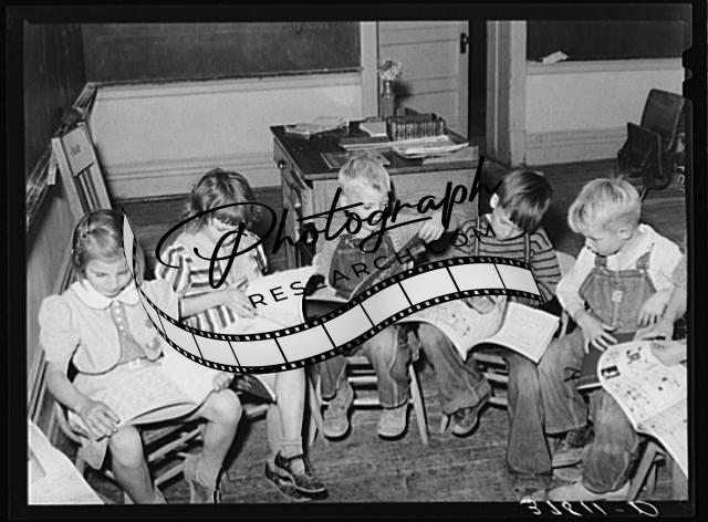 Title: School teacher pointing out a word to grade school pupil, Santa Clara, Utah. See general caption