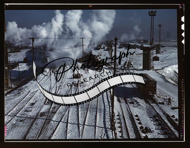 Santa Fe Railroad,RR,Freight Train leaving Corwith Yard,Chicago,Illinois,IL,1943