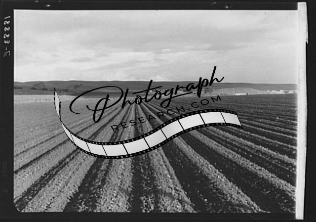 Title: Near Santa Maria, California. Large-scale pea fields. These peas must be handpicked by gangs of laborers for fresh table use. Frozen food process is not used in marketing California peas, although it may be introduced. Frozen peas in southern New Jersey and peas for canning in Wisconsin are machine harvested