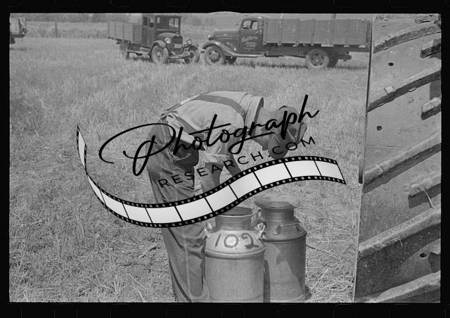 Wheat harvest in the field,feeding the thresher,Central Ohio,OH,Summer 1938,2