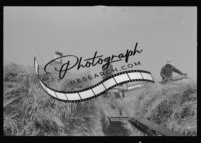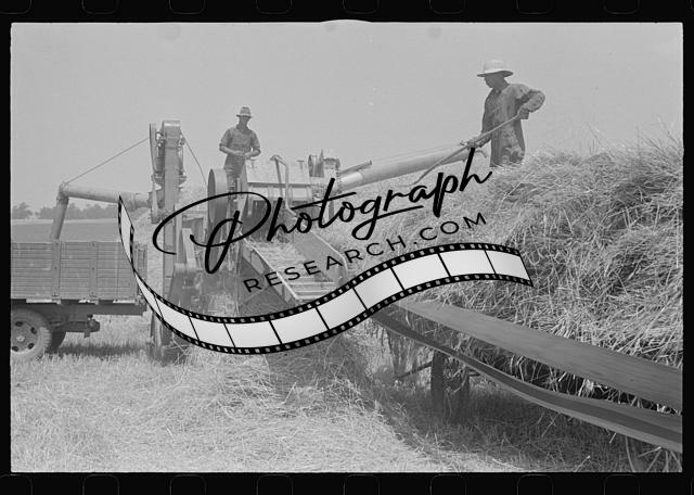 Wheat harvest in the field,feeding the thresher,Central Ohio,OH,Summer 1938,1 3