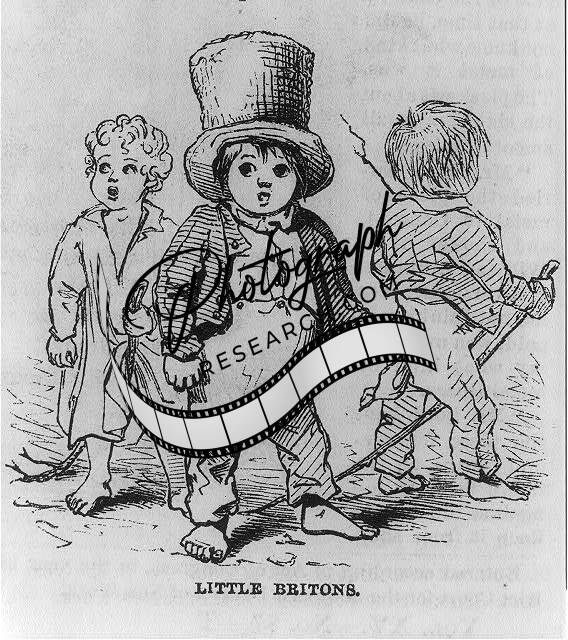 Little Britons,small ragged boys playing with sticks,hobby horses,1857,drawing