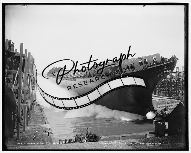 Launch,steamer,ship,boat,Harvard,freighter,cargo,shipping industry,Detroit,c1900