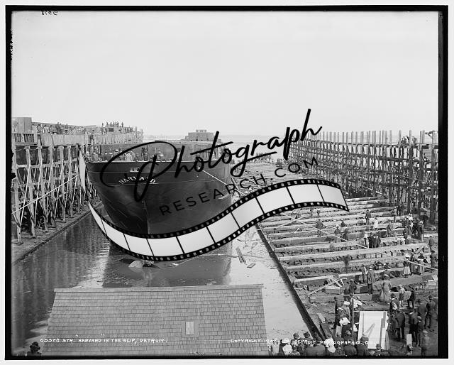 Steamer,slip,boats,Harvard,freighter,cargo,shipping industry,Detroit,MI,1900